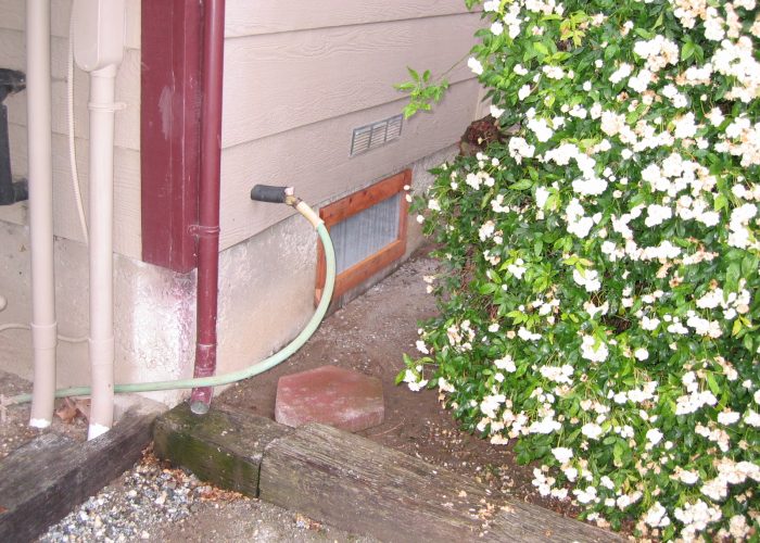 Installing flood vents coincides with the previous page where we did the flood vents on a small cottage. But we wanted to show you that you can install flood vents on any size house. To refresh you on this topic of flood vents, in the case of a flood, the large volumes of water will put a lot of pressure on the stem wall or foundation wall. Our goal is to reduce this water pressure, and you do so by installing flood vents throughout the foundation. This allows water to run through the foundation, vs pushing up against it and possible dislodging it from the house.
